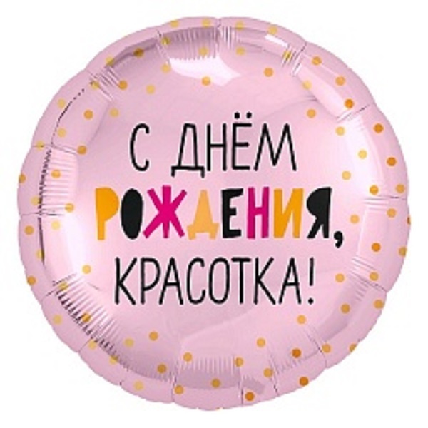 Аг 18''/46 см, Круг, С Днем Рождения, Красотка, Розовый (надутый гелием)