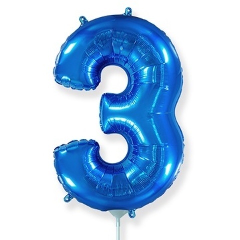 F 14"/36 см, Мини-цифра, Синий "3"не летает+ палочка и розетка