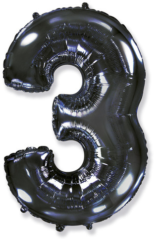 F 40"/102 см, Цифра Черный "3"(надутый гелием)