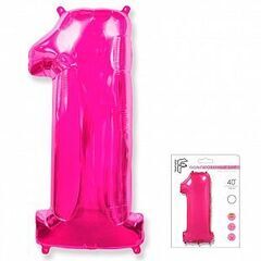 F 40"/102 см, Цифра Фуксия "1" (надутый гелием)