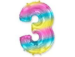 F 40"/102 см, Цифра Радуга "3"(надутый гелием)