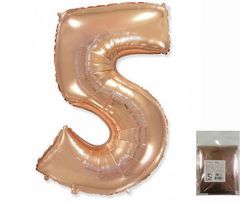 F 40"/102 см, Цифра Розовое золото "5" (наполнена гелием)