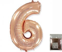 F 40"/102 см, Цифра Розовое золото "6" (надутый гелием)