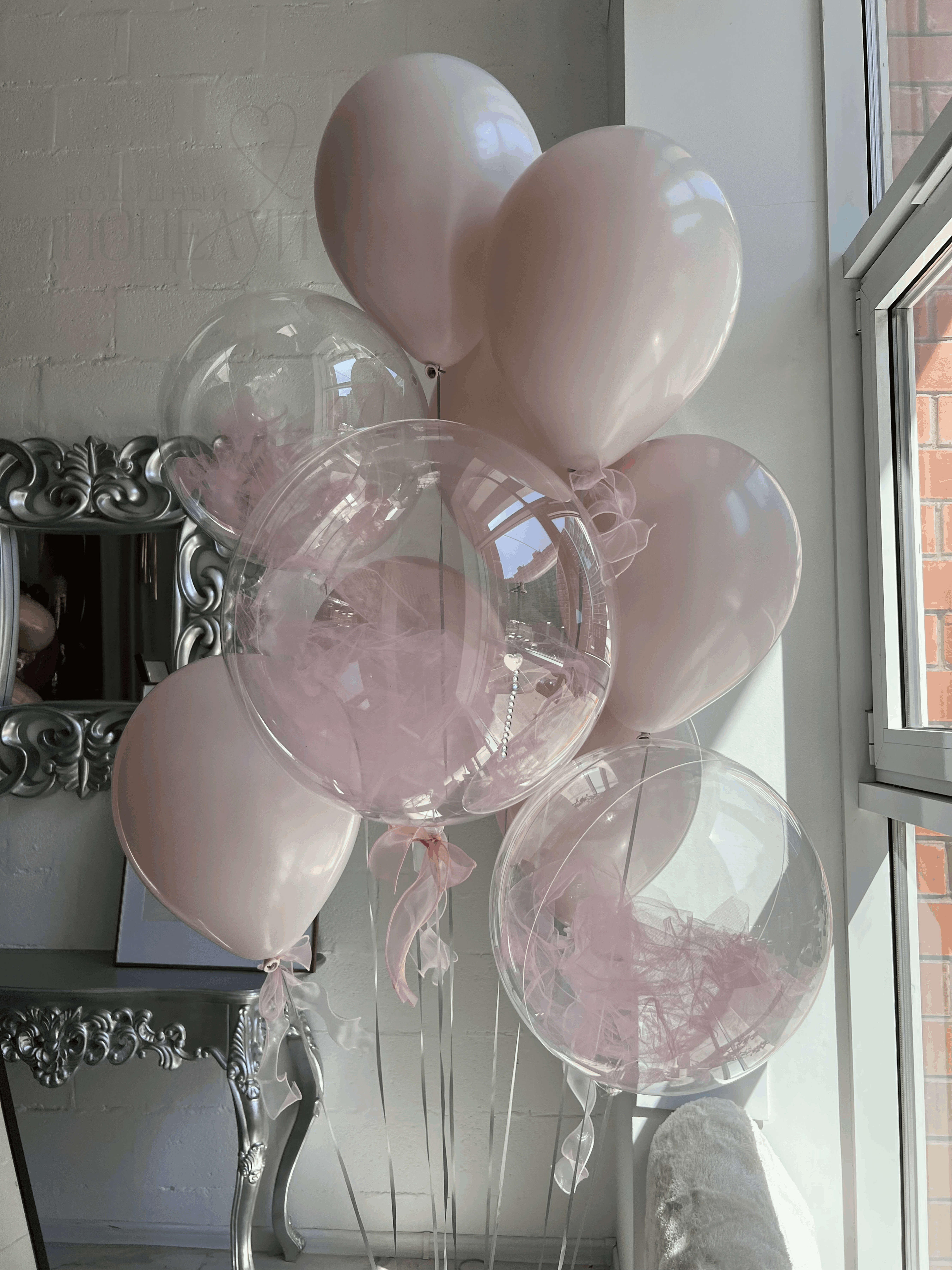 Шар бабблс (40 см) + розовый фатин - 3 шт.;