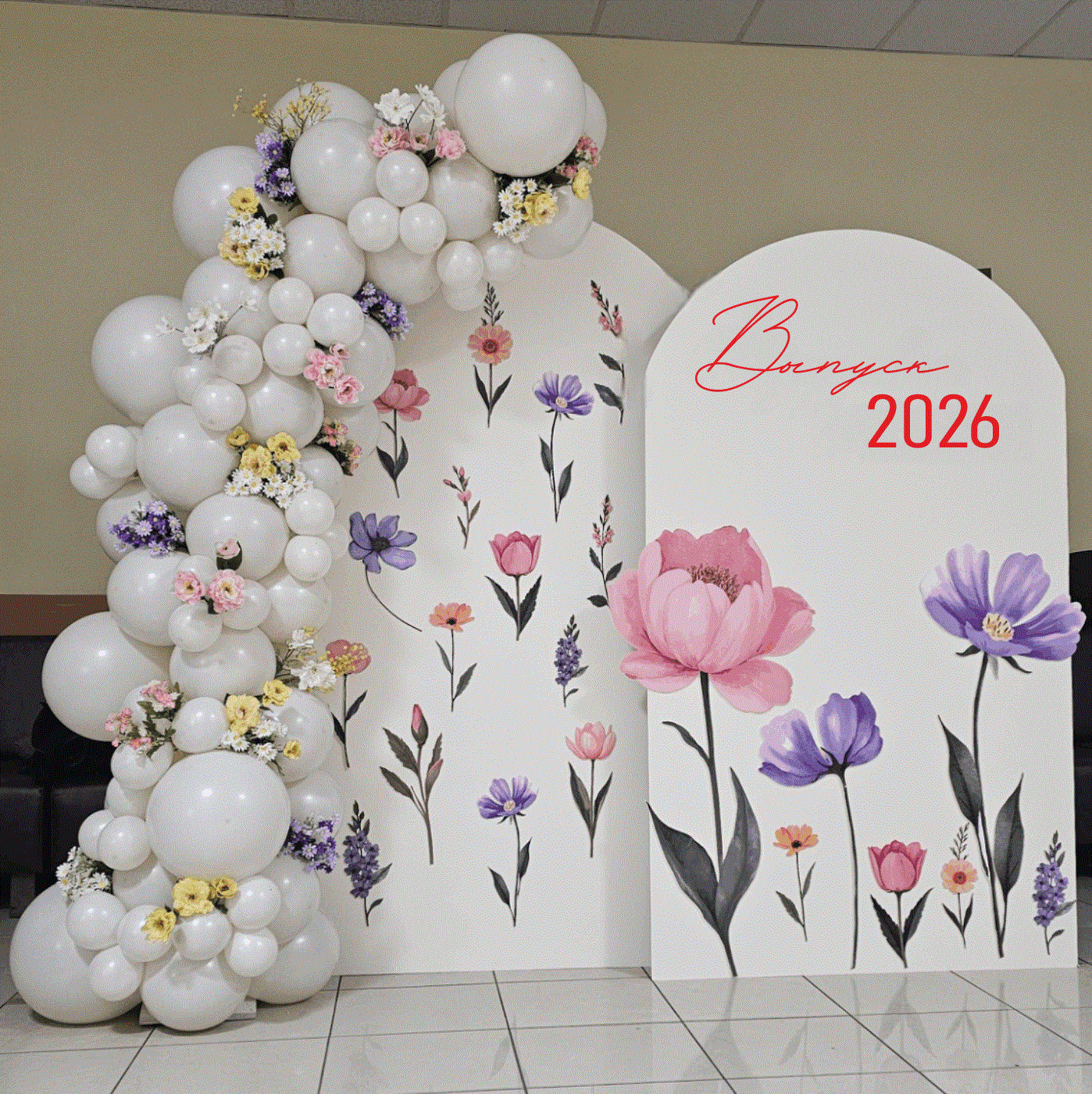 Арки-панели с цветами из ПВХ и надписью.