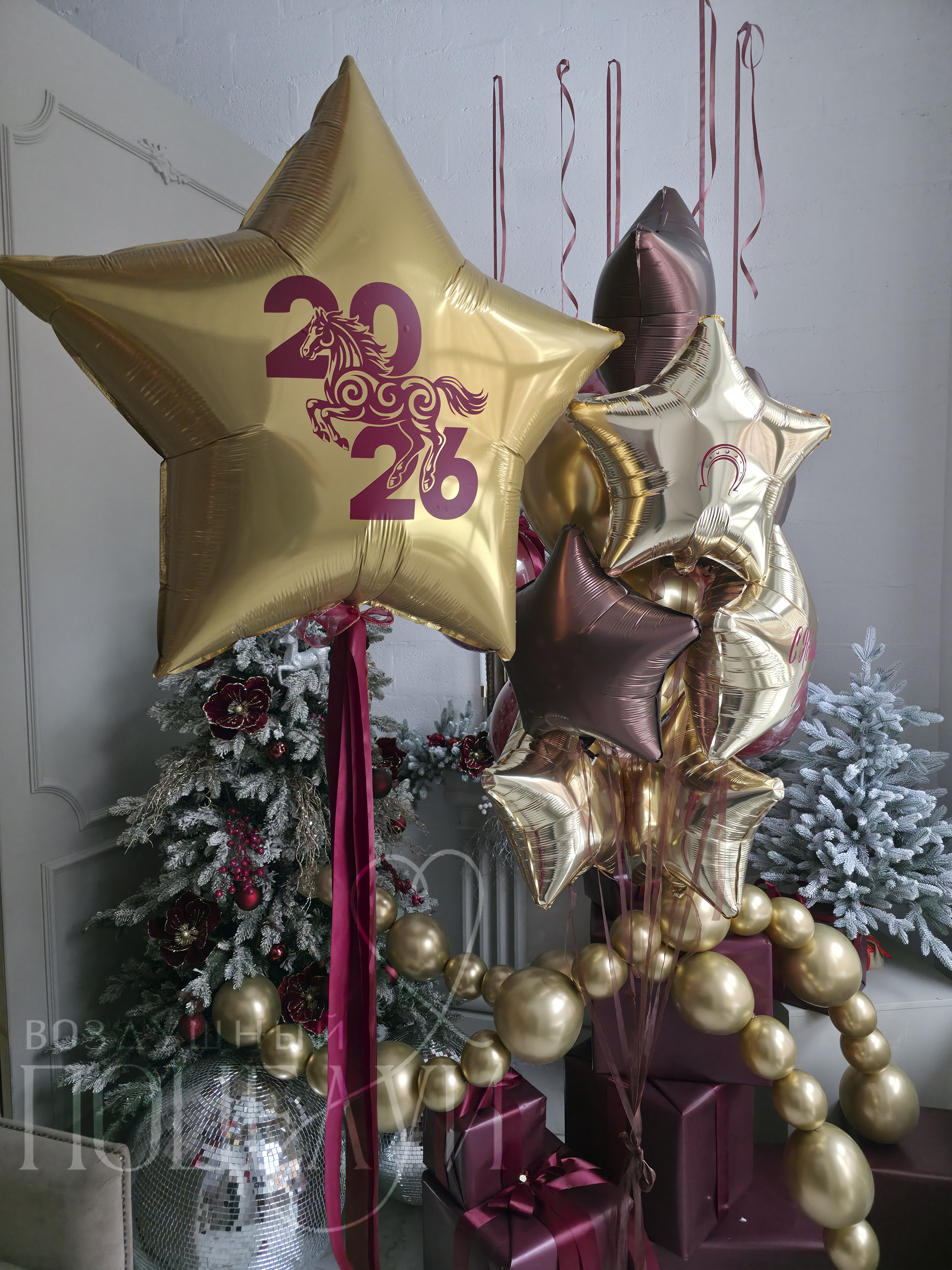 7 фольгированных звезд(на двух индивидуальная надпись)