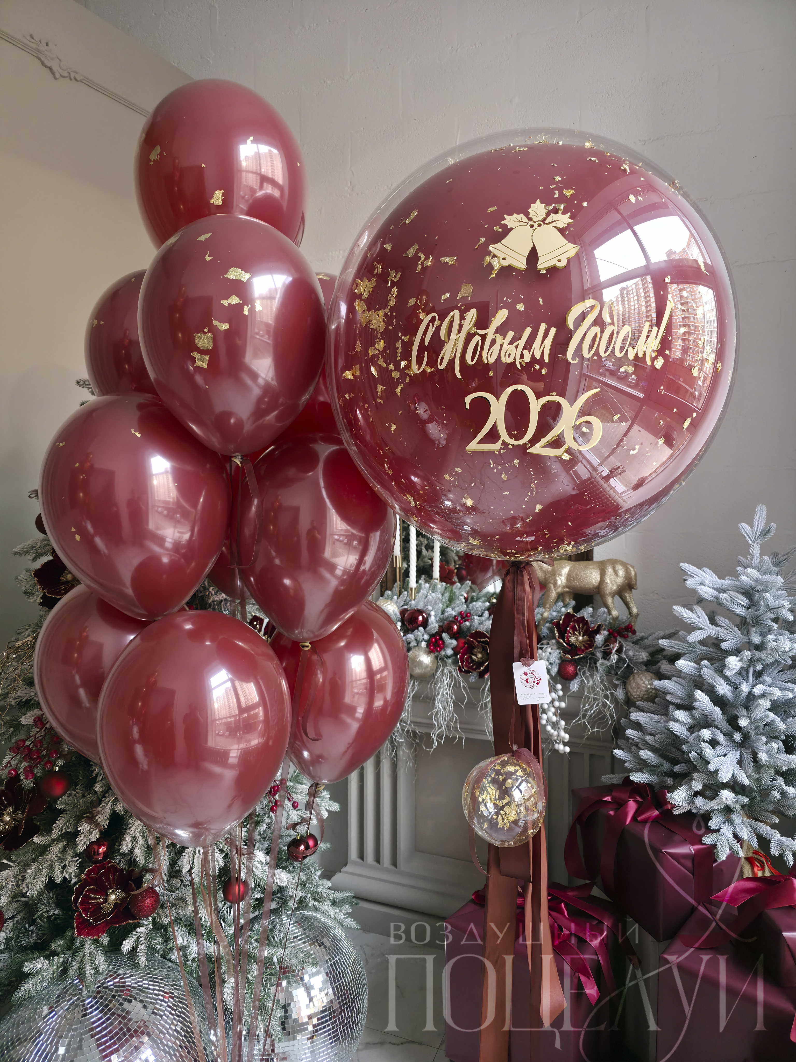 Большой стеклянный шар (65 см) с конфетти и надписью - 1 шт.