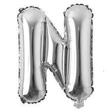 К 14"/36 см Мини-буква серебро "N" (надут воздухом, не летает)