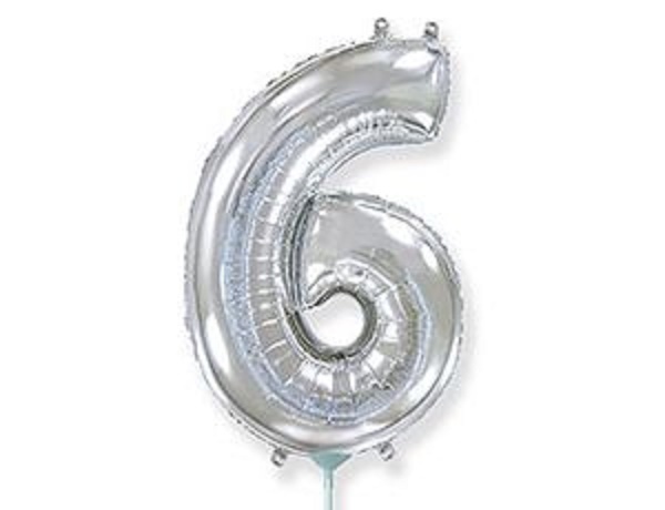 К 16''/41 см, Мини-Цифра "6", Серебро не летает+ палочка и розетка