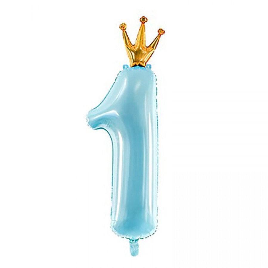 К Цифра 1 , (34"/86 см) с золотой короной, голубая (80 см)
