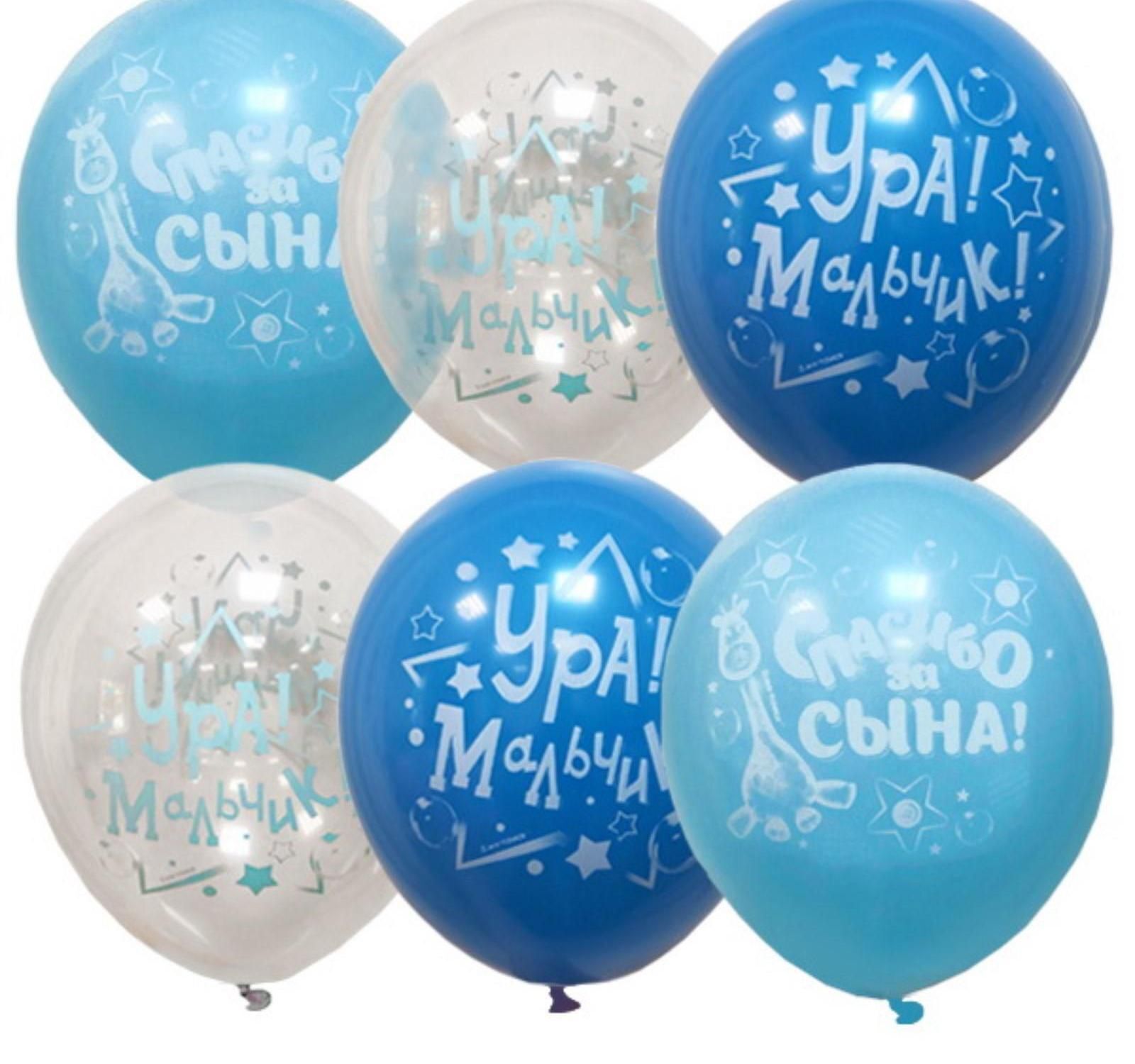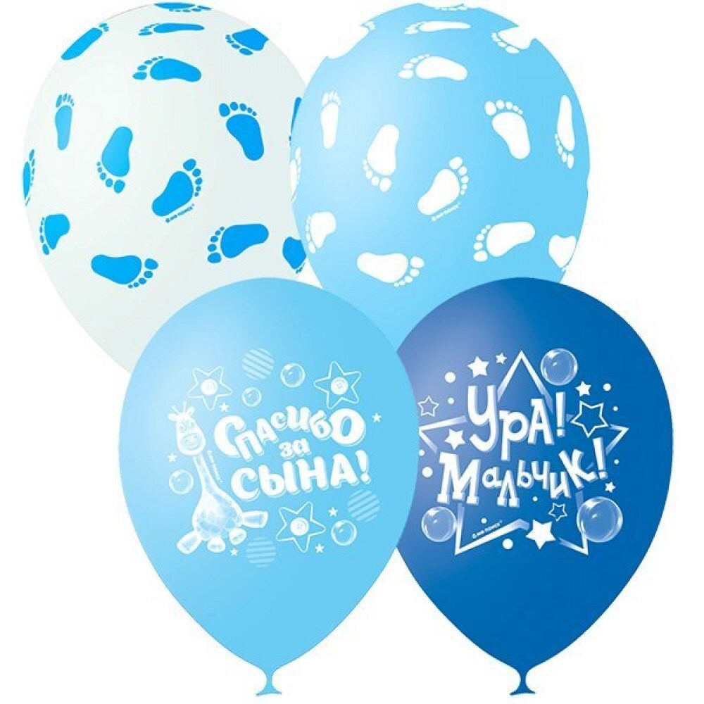 M 12"/30 см, К рождению мальчика, Пастель, декоратор, Ассорти(надутый гелием)