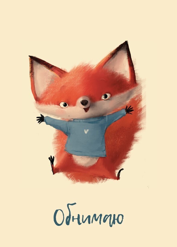 Мини-открытка, Обнимаю, Лисенок, 5*7 см