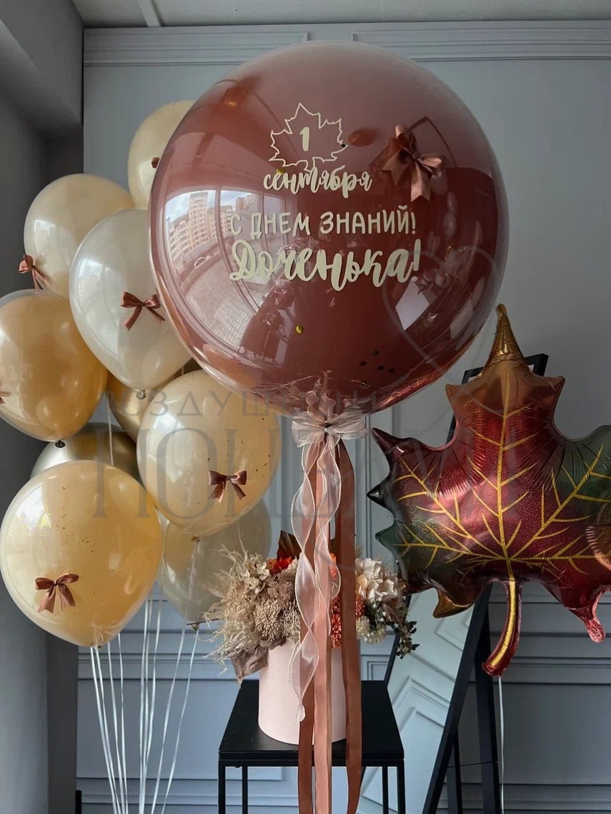 Фонтан из 10 шаров (6 шаров с бантиками, 2 хром золото, 2
