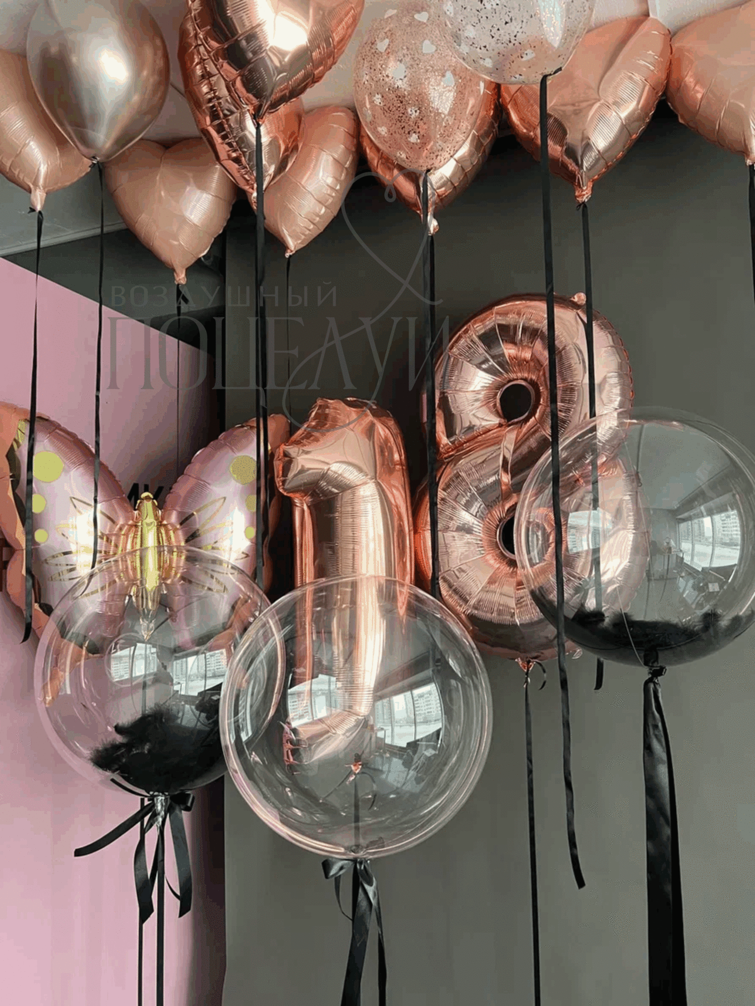 Шар Bubble с перьями (40 см) - 2 шт.;