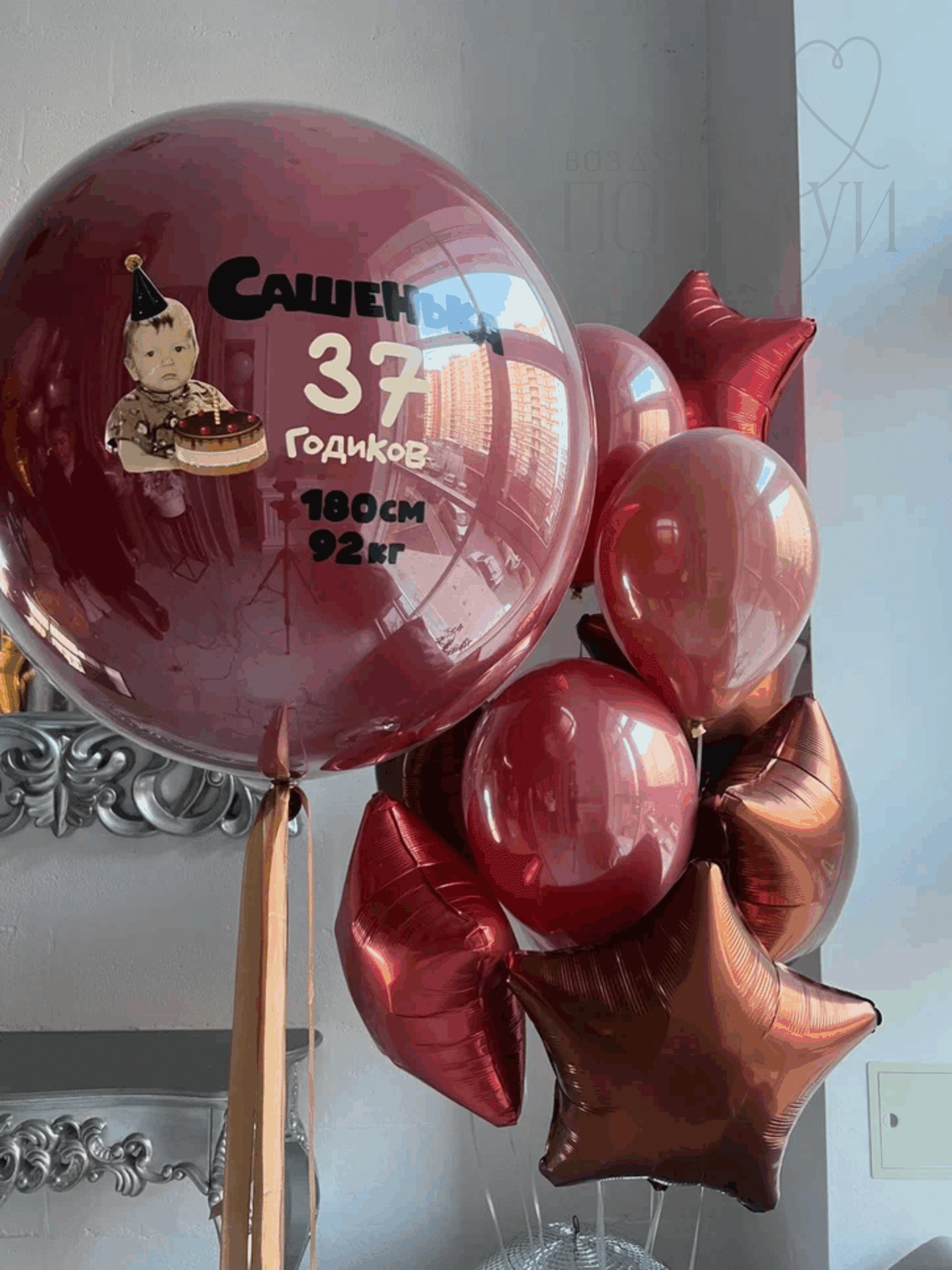 Большой шар (65 см) с надписью + наклейка с фото - 1 шт.;