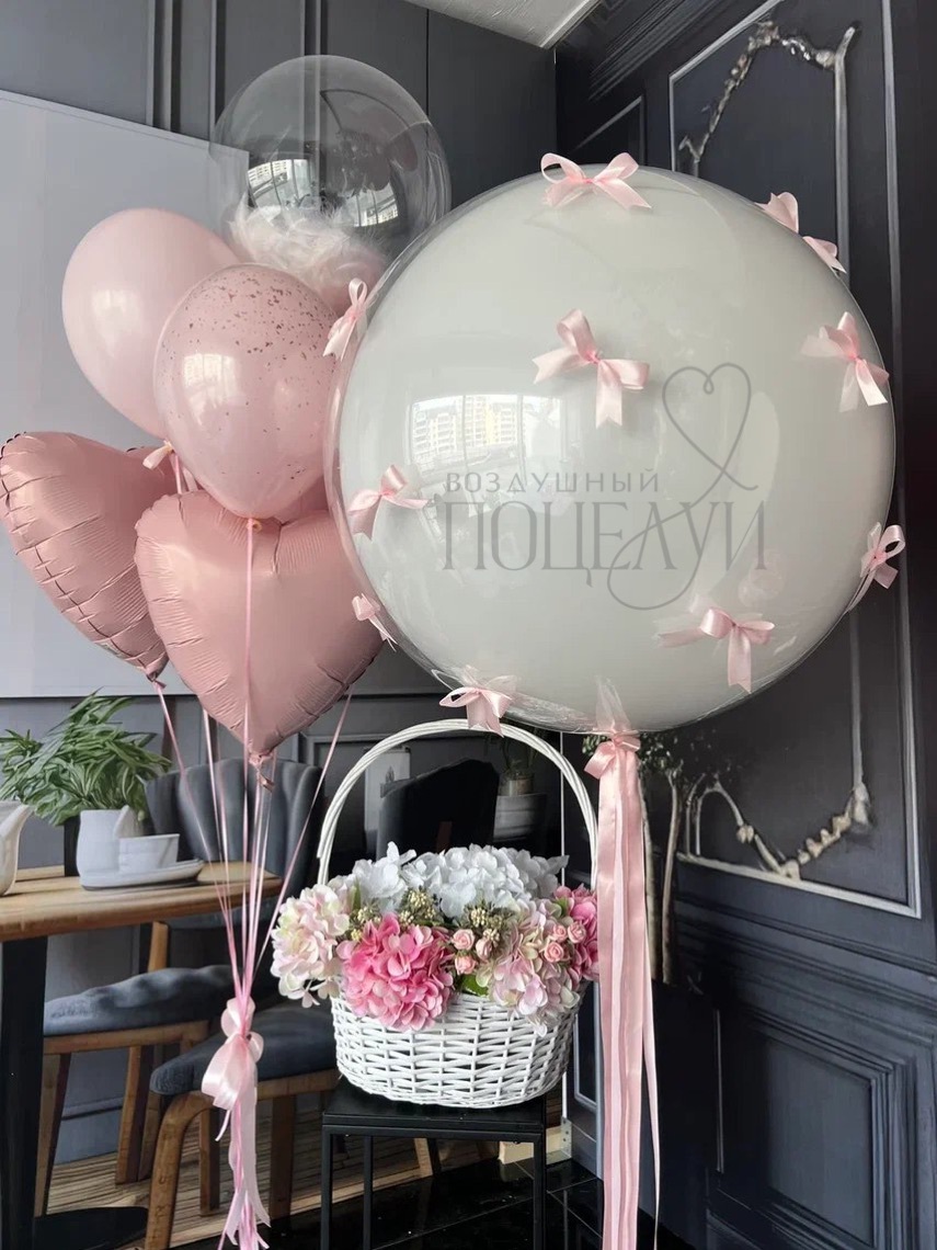 Шар bubble 18" (40 см) с перьями - 1 шт.;