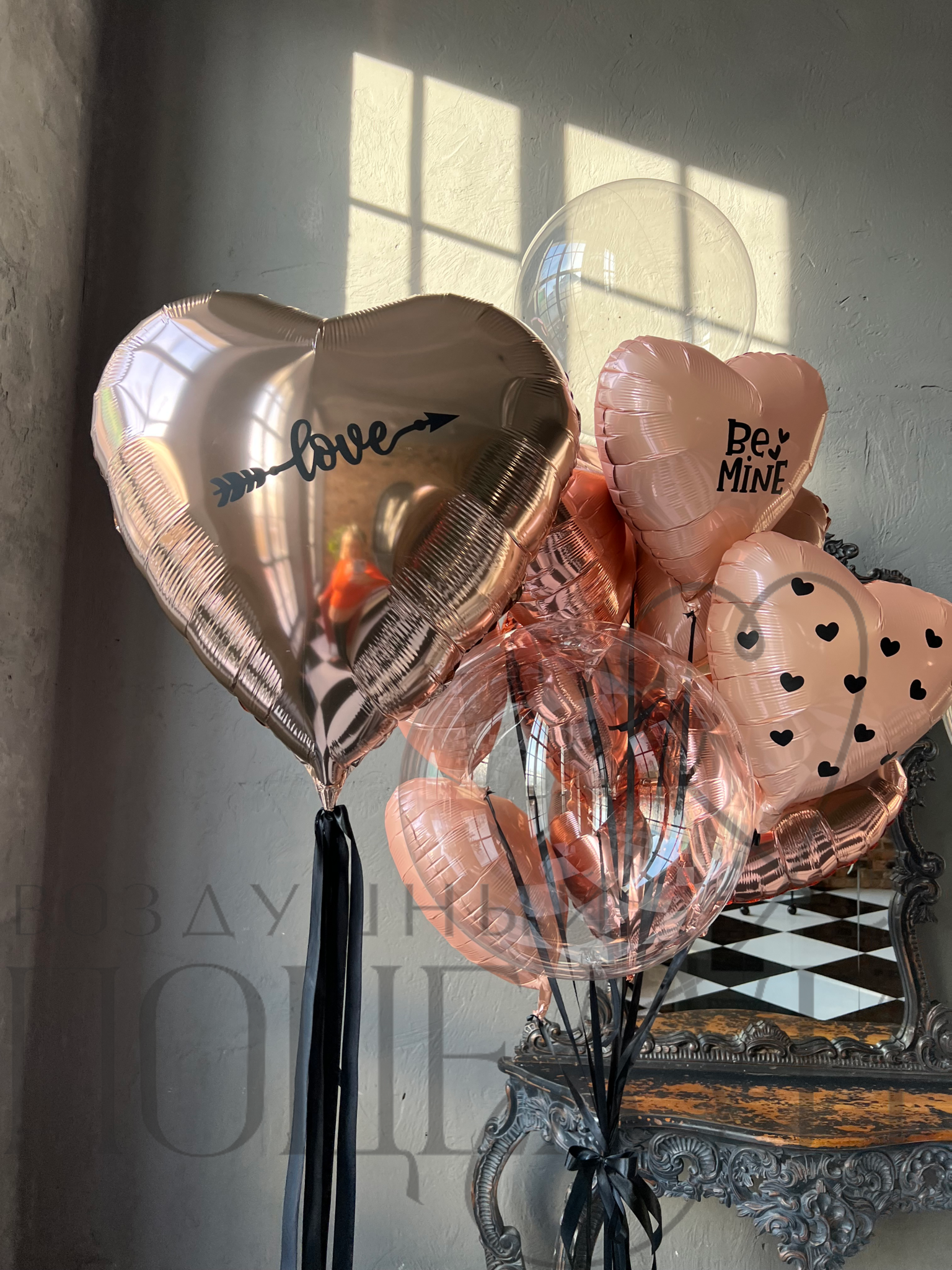 1 сердце 30" Агура ,роз.золото+ наклейка оракал черный