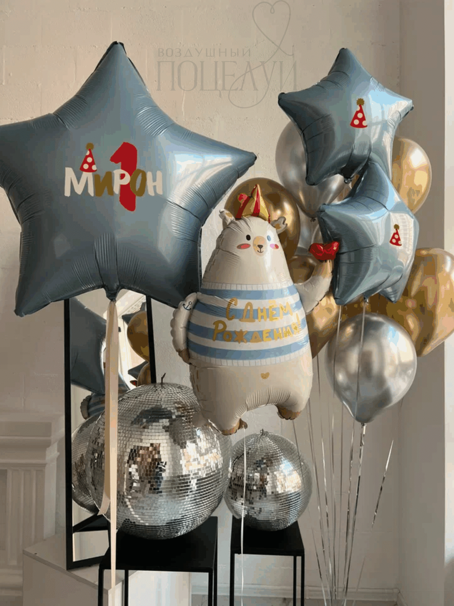Звезда 36" (90 см) "утренний туман" с надписью - 1 шт.;