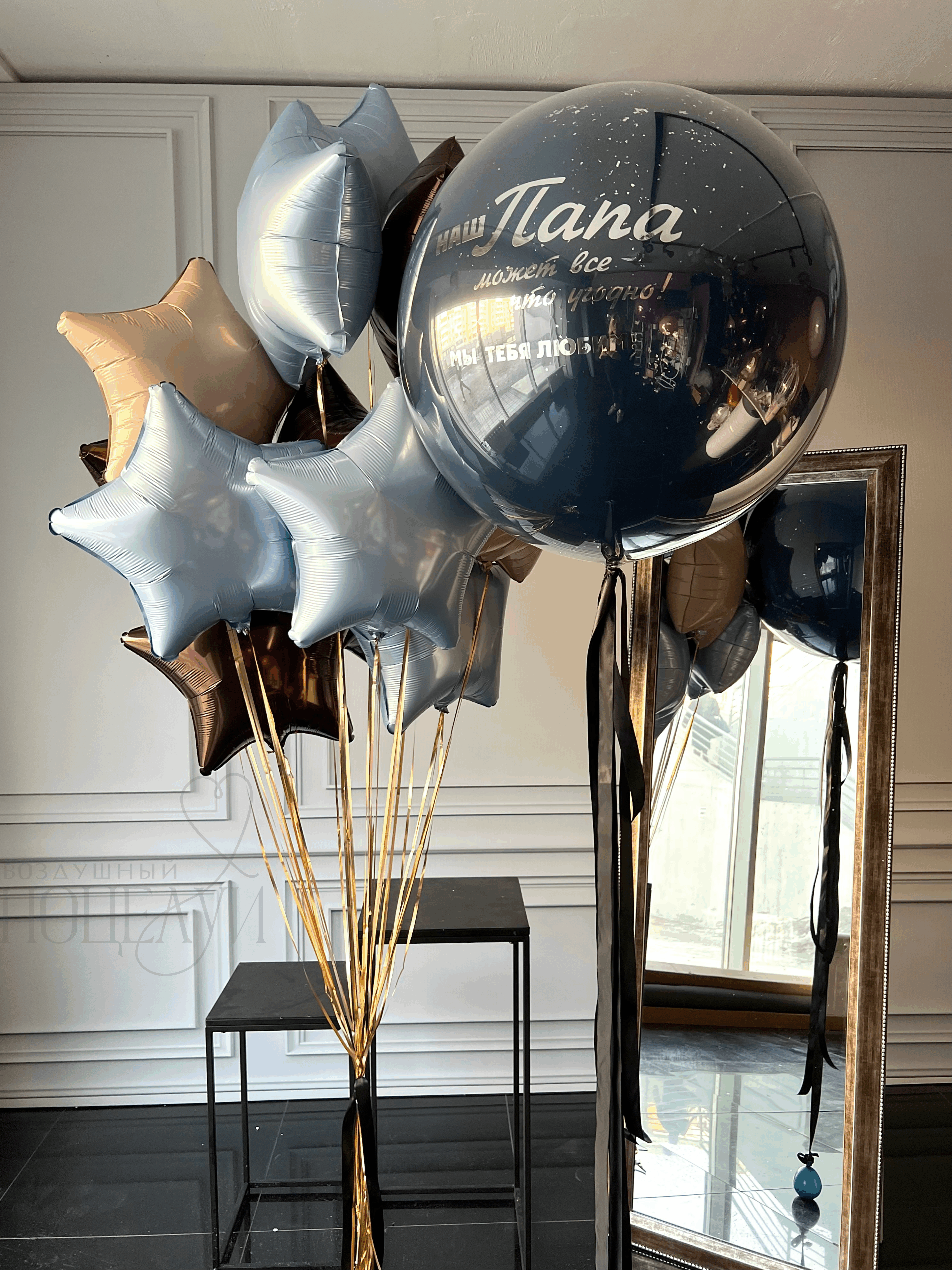 Большой стеклянный шар (60 см) «Темно-синий» + конфетти «Серебро» - 1 шт.;