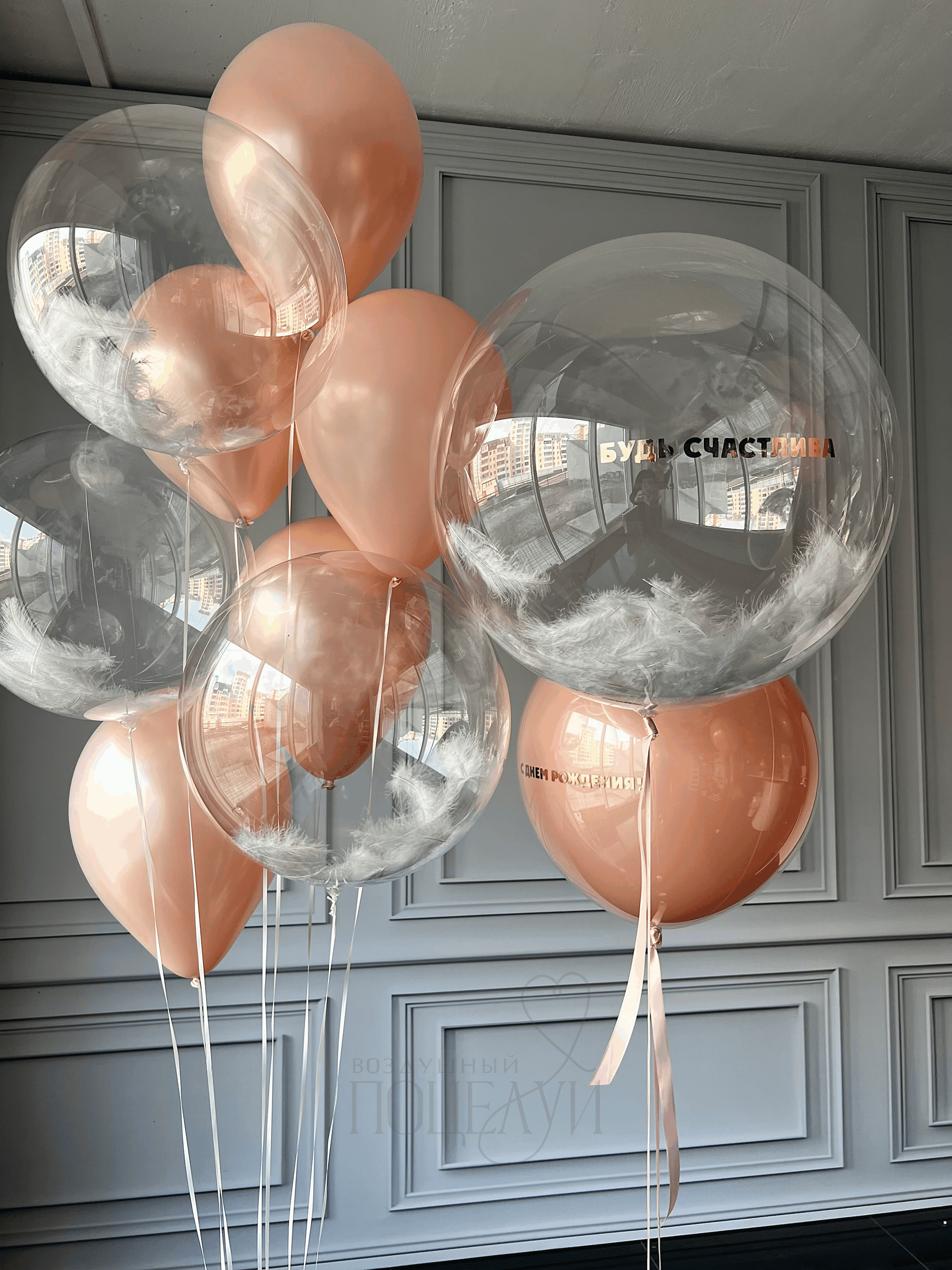 Шар большой баблс (60 см) с надписью + перья белые - 1 шт.;