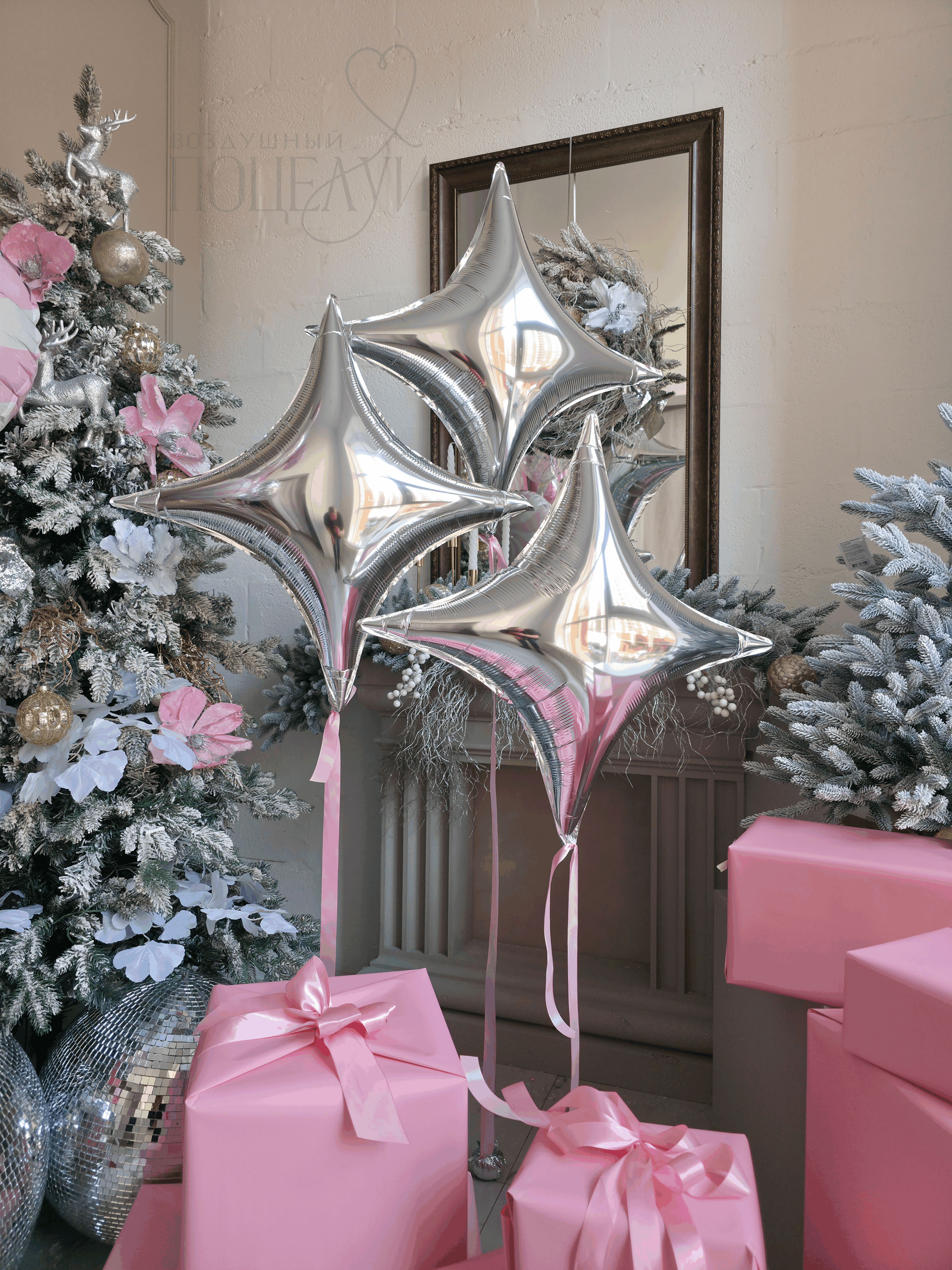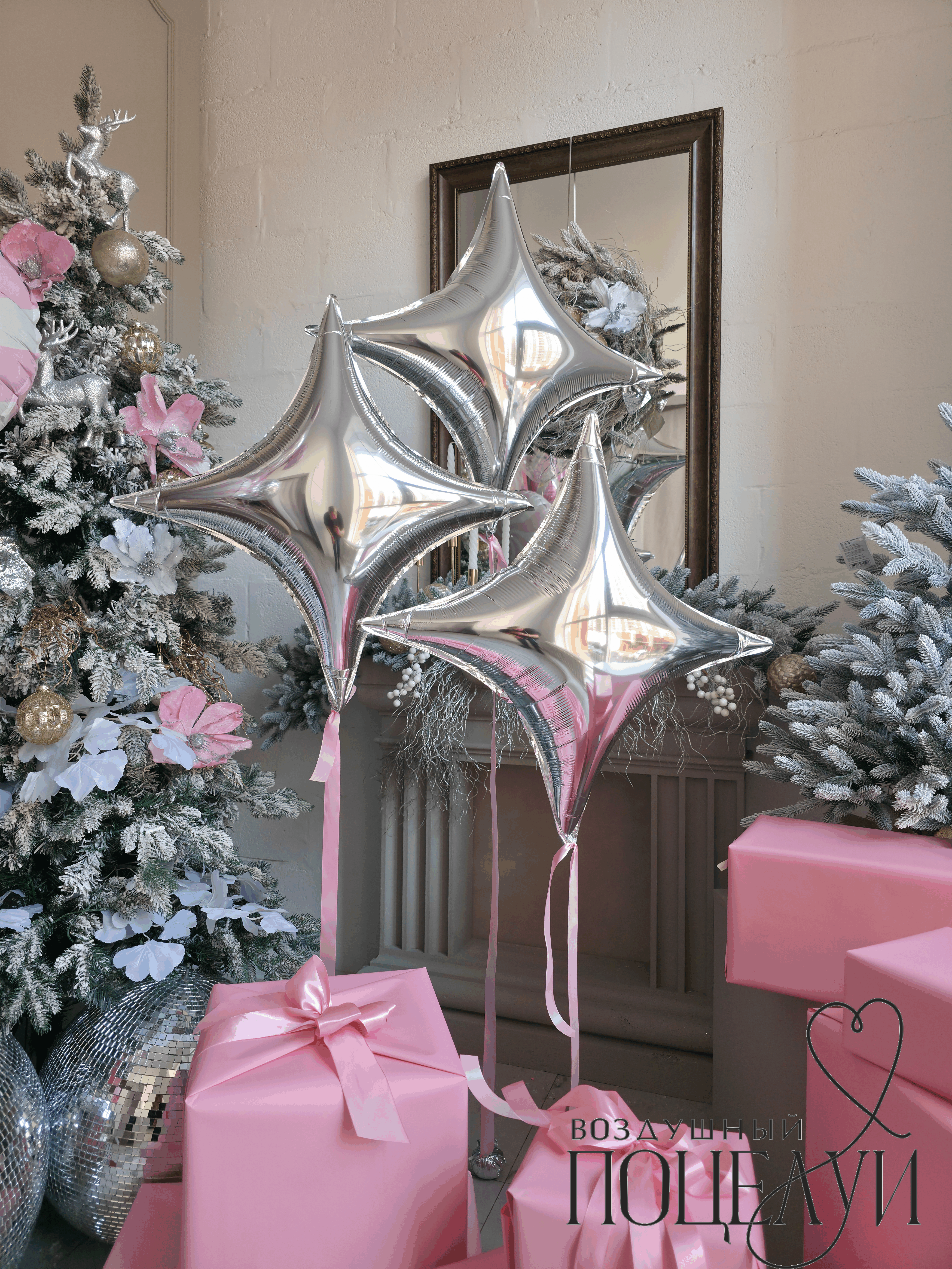 Звезда 4х-конечная (73 см), серебро - 3 шт.