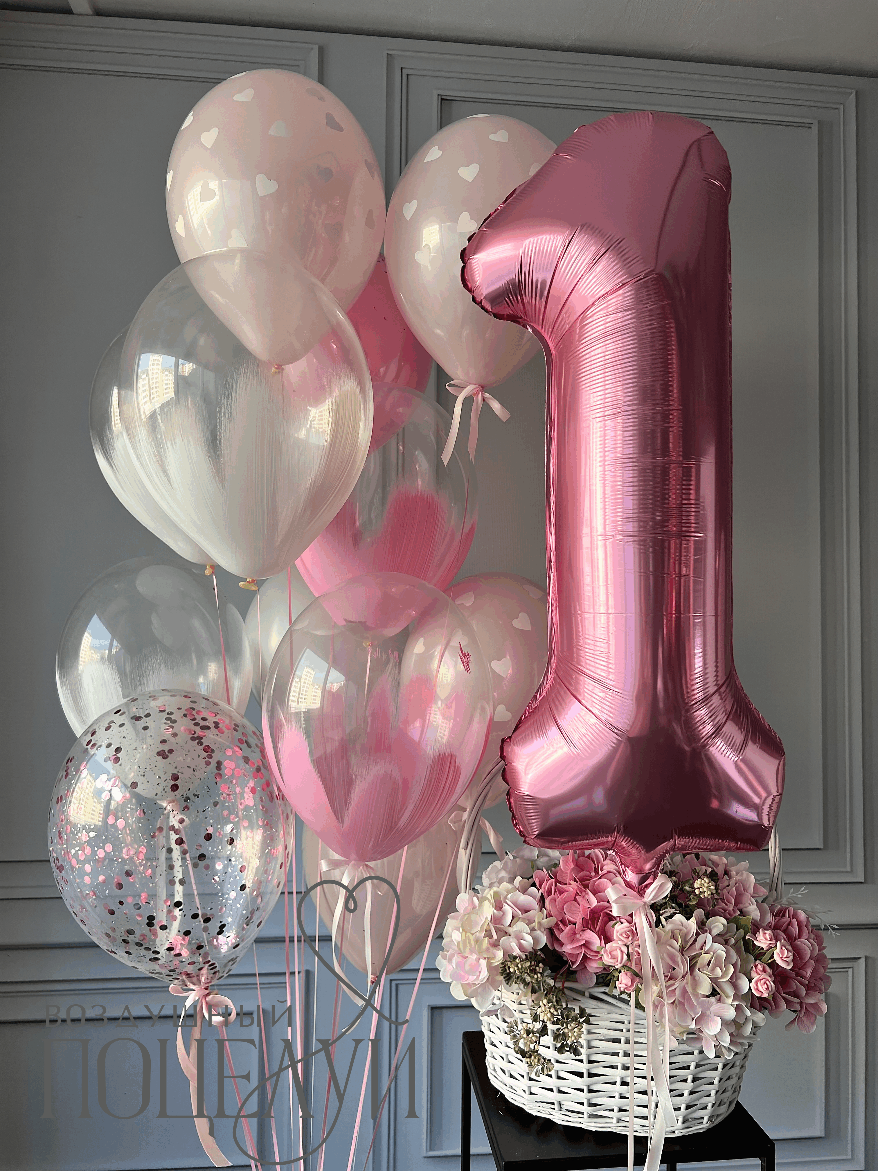 - Шар 12" (30 см) прозрачный с розовым конфетти - 1 шт.;