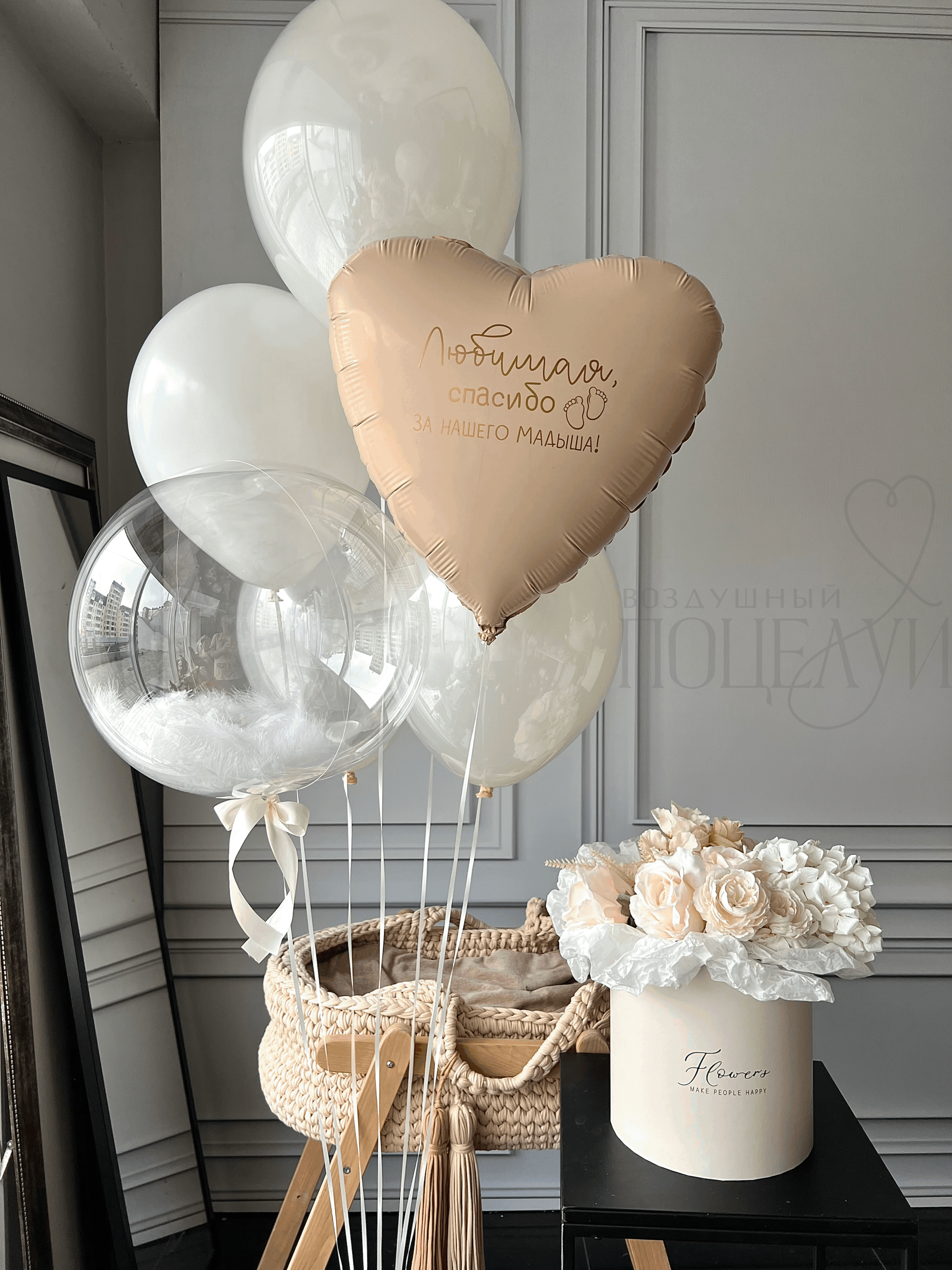 Шар баблс (40 см) + перья белые - 1 шт.;