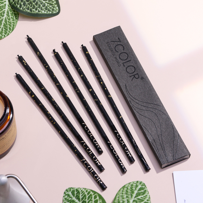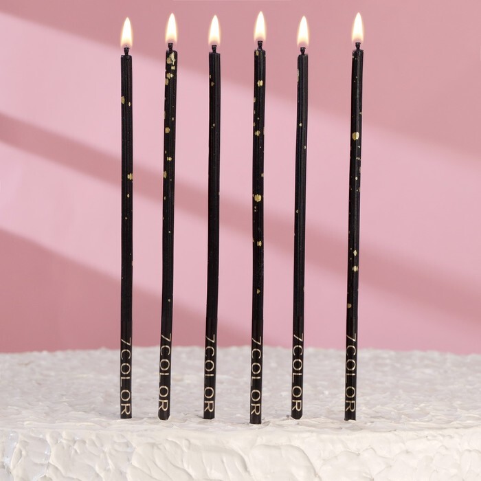 Набор свечей в торт, 6 штук "Исполнение желаний", 16,5 см, чёрный с золотом