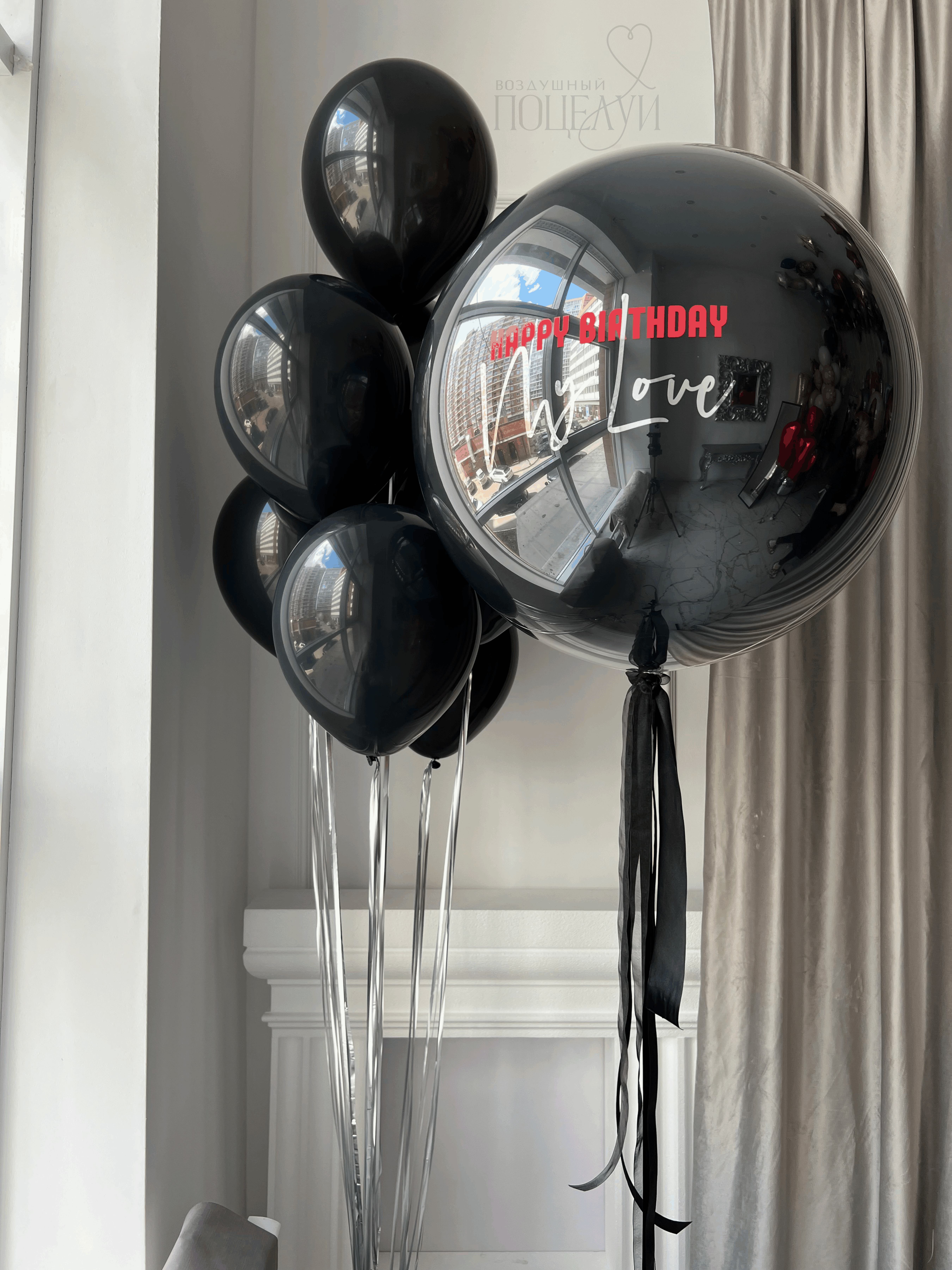 Большой стеклянный черный шар с надписью - 1 шт.;