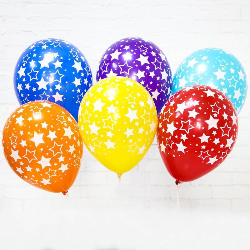 S шар 30 см, Звездочки яркое ассорти (надутый гелием) (надутый гелием)