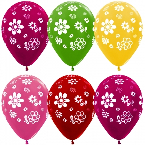 S Воздушный Шар Цветы, Ассорти, металлик 30 cv