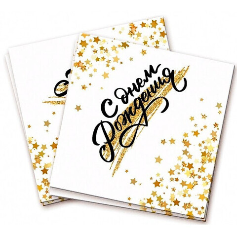 Салфетки С Днем Рождения, Золотой Звездопад, 33*33 см, 12 шт.