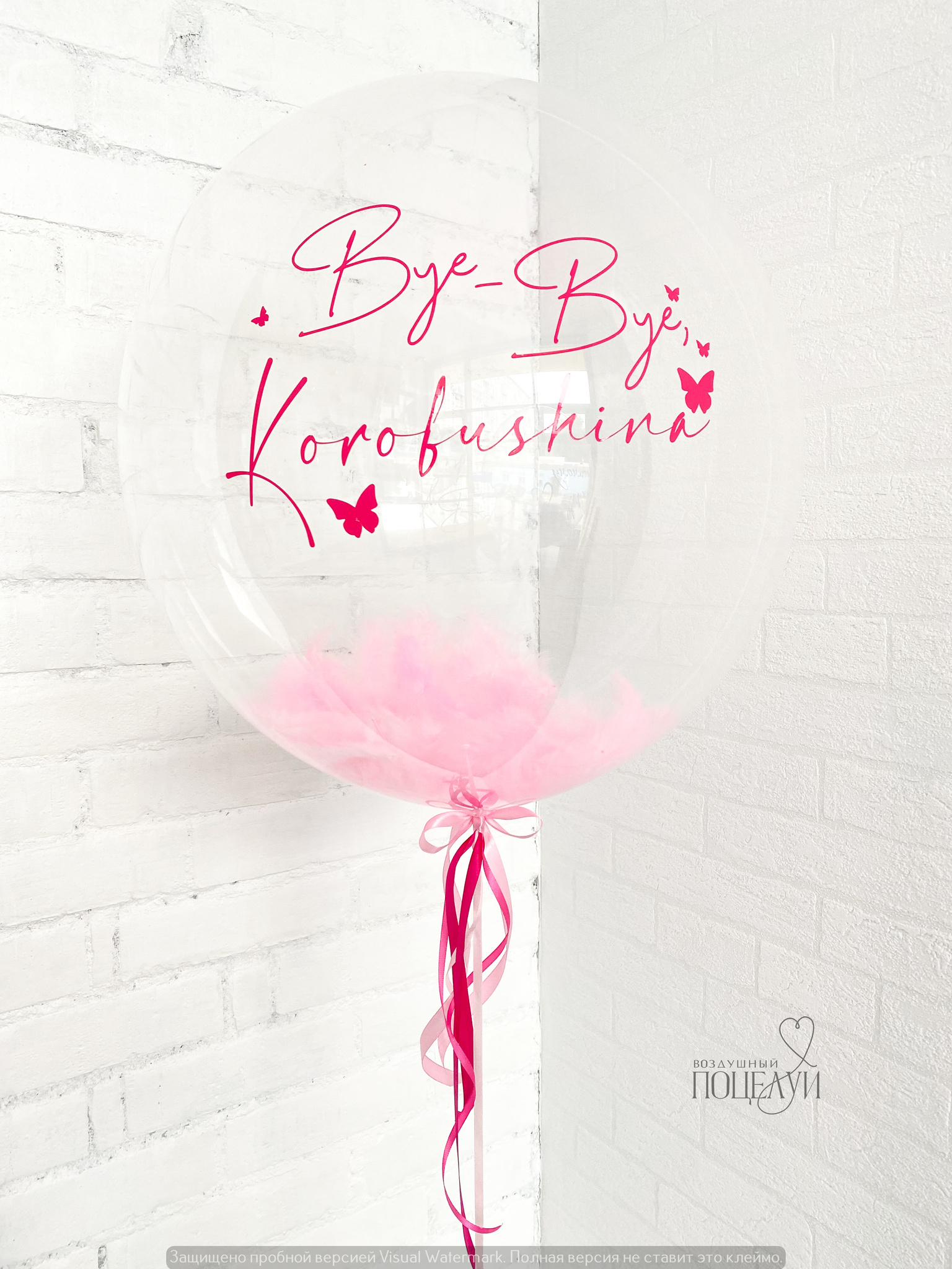 Шар баблс (Bubbles) с перьями и с индивидуальной надписью 60 см №3 (надутый гелием)б