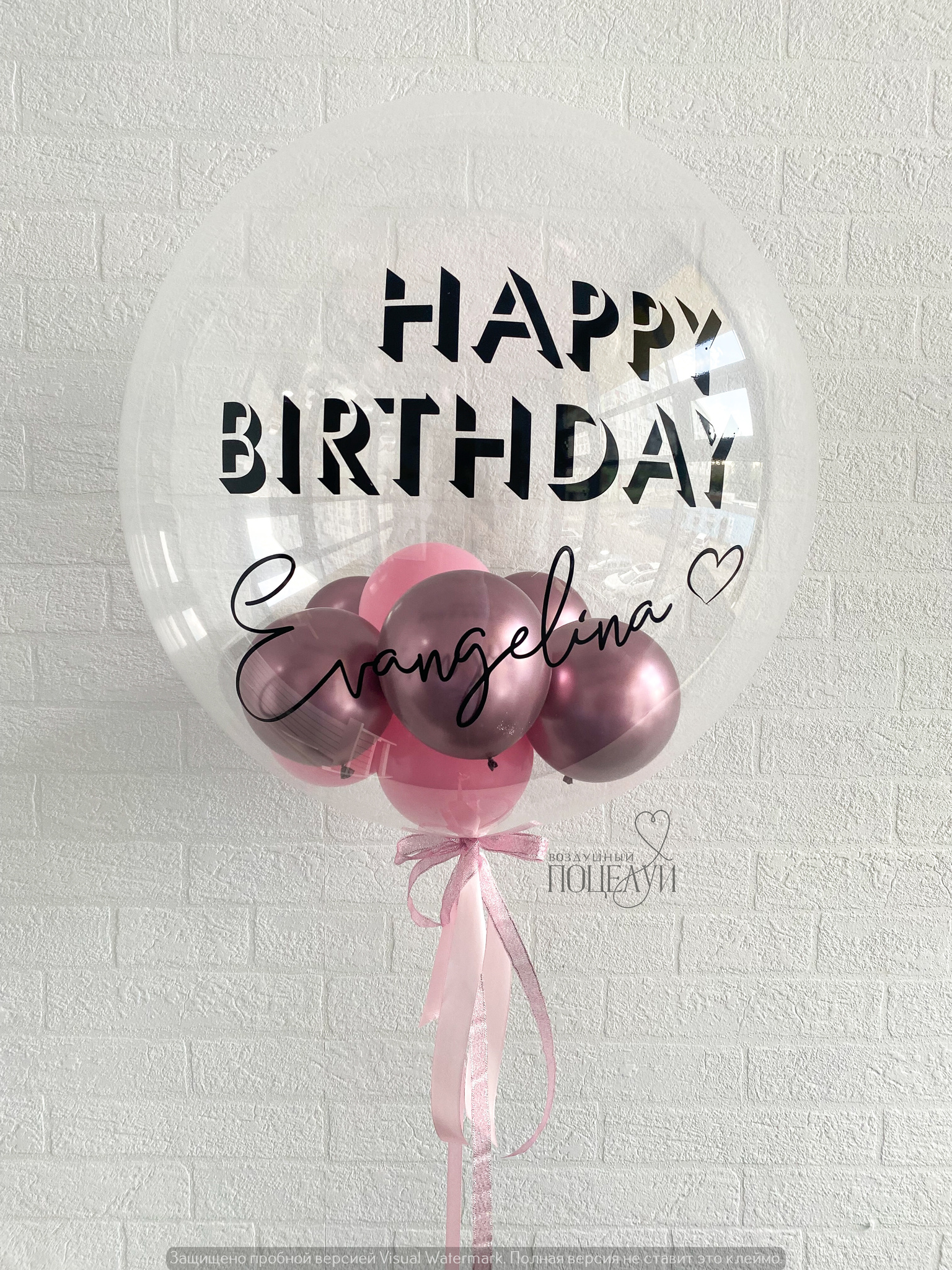 Шар баблс (Bubbles) с шариками и с индивидуальной надписью 60 см №3 (надутый гелием)