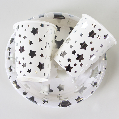 Стаканы, Звезды Микс, Серебро на белом, 250 мл, 6 шт. в одной упаковке