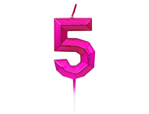 Свеча-цифра Диамант Маджента "5", 4,5 см