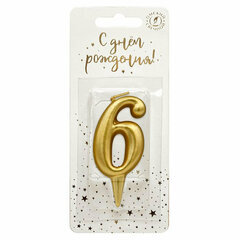 Свеча-цифра тортовая Золото "6", 7,5 см