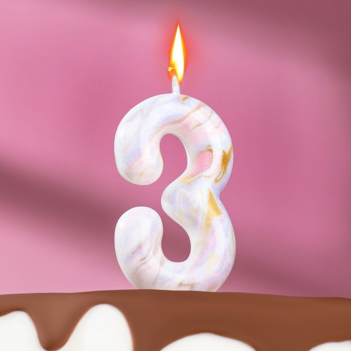 Свеча в торт "Белый мрамор", цифра "3", 5,5 см