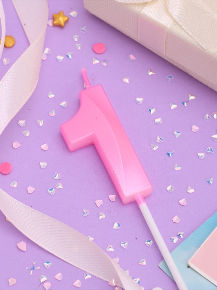 Свеча в торт на шпажке «Грань», цифра 1, 5 см, розовая