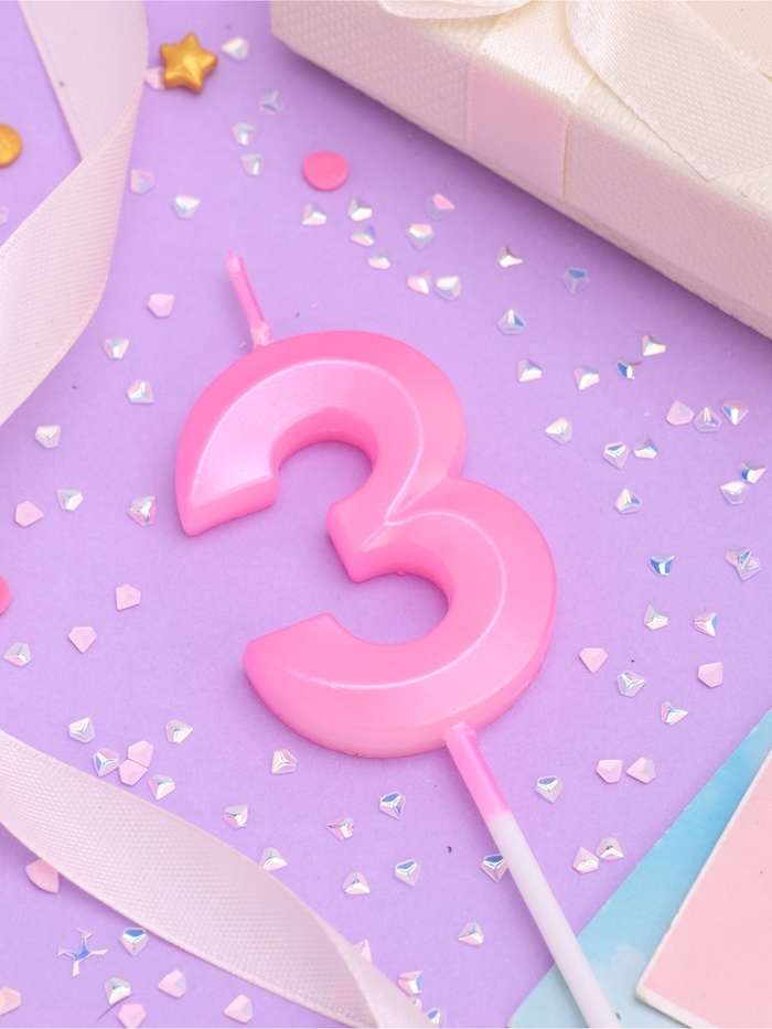 Свеча в торт на шпажке «Грань», цифра 3, 5 см, розовая