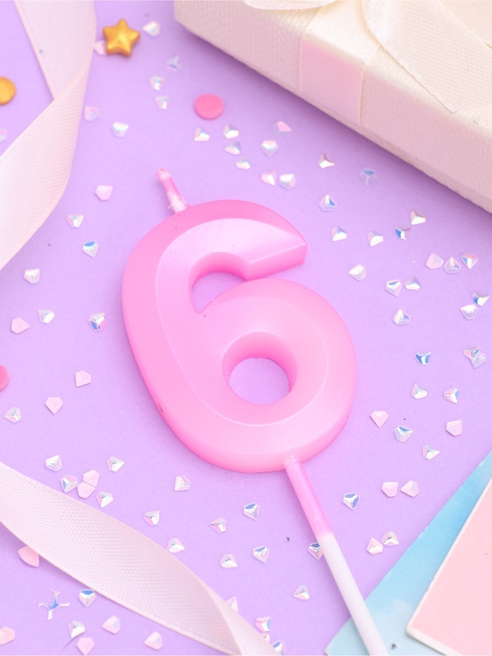 Свеча в торт на шпажке «Грань», цифра 6, 5 см, розовая