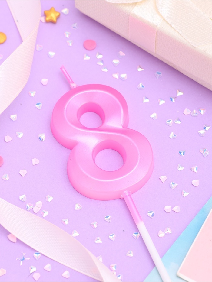 Свеча в торт на шпажке «Грань», цифра 8, 5 см, розовая