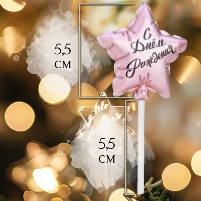 Свеча в торт "Воздушный шарик. Звезда", 5,5 см, розовое золото