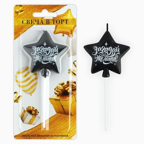 Свеча, Звезда на шпажке «Загадай желание», Черный, 5,5*12 см