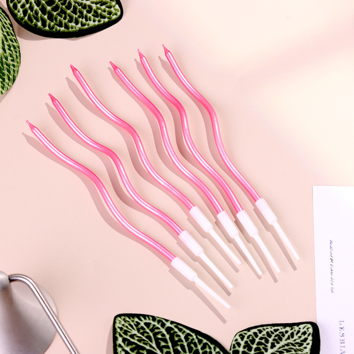Свечи для торта витые "Серпантин" 6 шт, коктейльные, розовый блик