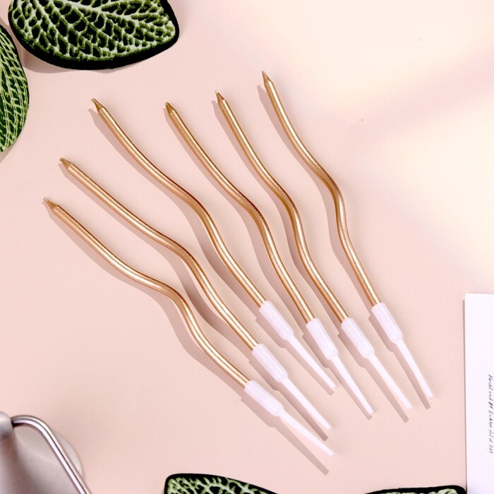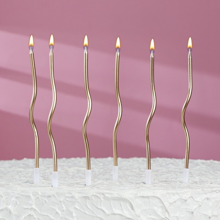 Свечи для торта витые "Серпантин" 6 шт, коктейльные, шампань