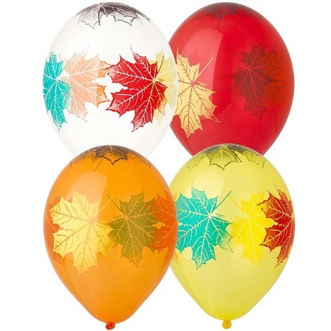 В 14"/30см, Лист Клен, Шелкография кристалл (надутый гелием)